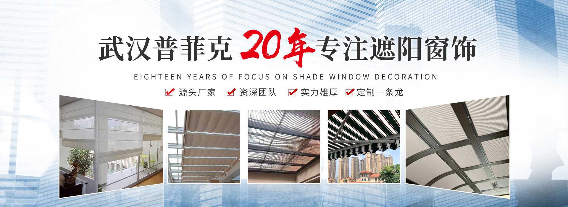 武漢普菲克建材有限公司是一家專業(yè)從事家居窗簾、電動(dòng)窗簾、窗飾及各種工裝類遮陽產(chǎn)品研發(fā)、方案集成、安裝售后的供應(yīng)商。 2002年,公司成立于中國的水陸空交通樞紐——武漢。經(jīng)過多年的發(fā)展,公司的業(yè)務(wù)范圍... +more